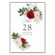 Números de tarjeta de mesa de boda de peonías, lirios y eucalipto de acuarela bohemia borgoña - marsala trendy personalizables para los detalles de su evento.