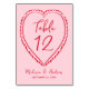 Guía a tus invitados a sus asientos con estas tarjetas de número de mesa de boda caprichosas diseñadas para coordinar con una decoración de boda juguetona e inspirada en el Día de San Valentín. El diseño presenta un corazón rojo dibujado a mano que rodea el número de mesa mostrado en una escritura roja manuscrita sobre un fondo rosa suave, con los nombres de la pareja y la fecha de la boda que se muestran debajo para un toque personal encantador. El diseño se repite en la parte posterior para un aspecto coherente y pulido en toda su recepción. Perfectas para bodas de febrero, bodas de San Valentín o parejas que aman la papelería moderna y divertida con un toque retro, estas tarjetas de número de mesa añaden personalidad y romance a su decoración de mesa. Esta tarjeta mide 3,5 "x5". Edite cada número de mesa individualmente y añádalos a