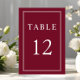 Tarjeta de Número de Mesa de Boda Clásica Elegante Formal Burgundy Roja