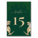 Tarjeta de número de mesa de boda de dinosaurio divertido Boda jurásica de novios T-Rex con vegetación de eucalipto en verde oscuro