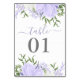 Número de tabla de Boda de acuarela del perwinkle botánico