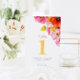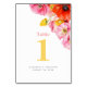 Estos números de mesa de boda de amapolas naranjas rosadas melocotón modernas presentan arte de amapolas florales coloridas de acuarela y se pueden personalizar con su propia información.