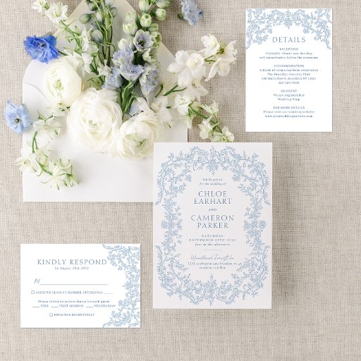 Vintage Victorian Blue Baroque Line Art WeddingDiseñado por Vivian M