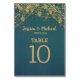 Elegante verde azulado con brillantes luces de cuerda dorada y número de la mesa de la recepción de bodas. Contáctenos para obtener ayuda sobre la personalización o la correspondencia de productos.