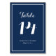 Completa el ambiente de tu evento con esta tarjeta de números de mesa personalizable. Cuenta con caligrafía moderna y tipografía simple. Los colores son azul marino y blanco, perfectos para bodas de invierno, fiestas de soltera, baby showers y otros eventos. Personaliza añadiendo nombres y otros detalles del evento. Esta es parte de una colección de bodas.