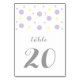 Tarjeta de número de mesa Boda de Confetti de moda y agradable diseño con puntos de confeti divertidos en color morado y amarillo. Esta tarjeta de mesa sencilla y moderna se puede personalizar fácilmente con la información de su boda. Para obtener más opciones de personalización, haga clic en Personalizar.