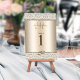 Estas glamorosas tarjetas de purpurina de champán de moda son perfectas para su elegante decoración de mesa de bodas. El fondo metálico falso se enmarca en la parte superior e inferior con damasco purpurina, y el monograma en la parte superior está en una tipografía de escritura elegante.