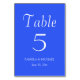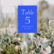 Los clientes de la recepción de bodas podrán ir a la mesa con esta tarjeta de números de mesa de estilo sencillo que incluye letras blancas y estilizadas en un fondo de color azul real y a la moda. El diseño está a cada lado de la tarjeta. Edite su tarjeta para cambiar el número de tabla, los nombres de la pareja de bodas y la fecha . Ordenar las tarjetas por separado para cada número de tabla.