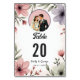 Este elegante número de mesa de boda floral acuático es perfecto para un boda moderno. El diseño romántico presenta un elegante marco floral acuático con un ilustracion de novia y novio y una caligrafía negra sobre un fondo blanco.