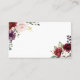 Agregue un acento boho elegante a las mesas de sus eventos con estas tarjetas de lugar florales. Cuenta con ilustraciones de acuarela de flores rojas, rosadas, marfil y púrpuras con un patrón floral coincidente. Estas tarjetas de lugar con bordes florales serán perfectas para bodas de otoño, fiestas de compromiso, baby showers, cumpleaños y otros eventos.