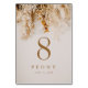 Una tarjeta de mesa de boda de otoño romántica y moderna con realismo fotográfico que presenta un ramo floral seco neutral en tonos de trigo, ocre y herrumbre.