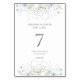 Número de mesa de boda de flores silvestres vincapervinca azul
