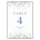 Número de mesa de boda de flores silvestres vincapervinca azul