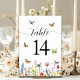 Tarjeta De Mesa Boda de flores silvestres y mariposas