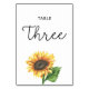 Tarjeta De Mesa Boda de girasol Número de la mesa tres
