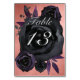 Una tarjeta con el número de la mesa de satén, decorada con rosas de color negro oscuro y color morado, te permitirá sentarte en la recepción. Esta elegante tarjeta numérica presenta elementos góticos entrelazados con una estética moderna. Se mezcla elegantemente con bodas negros, bodas góticos o bodas de otoño moderno. Los rosas oscuros florecen en medio de oscuros motivos florales, exudando un misterioso encanto que resuena a lo largo de los siglos.