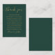 Una elegante celebración de boda verde esmeralda gracias al juego de tarjetas de recepción. Personalizado con tu especial mensaje de agradecimiento en una tipografía de oro elegante. Un agradecimiento especial por sus invitados. Diseñado por Thisisnotme©
