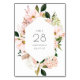 Tarjetas de número de mesa de boda floral rosa pastel simples y elegantes.