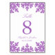 Tarjetas de número de tabla de boda de invierno con copo de nieve púrpura