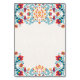 El diseño del número de la mesa de Boda botánico floral de Fiesta Mexicana presenta un elegante arreglo floral que enmarca la parte superior e inferior de la tarjeta con un diseño simétrico, aportando equilibrio y un sentido de formalidad a la composición. Las flores están estilizadas con colores llamativos, como el rojo, el verde azulado y el naranja, complementados con intrincadas viñas y pequeñas flores que crean un ambiente animado y refinado. El motivo floral central de la parte superior sirve de punto central, mientras que los detalles de los alrededores añaden una encantadora estética de arte folclórico, festiva y sofisticada.