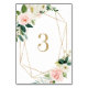 Número de Mesa de Flores de Primavera en Acuarela Geométrica | Número de mesa elegante y femenino con ilustraciones de acuarela de rosas y peonías blancas, melocotón y rosa, acentos de follaje y marco geométrico de lámina falsa. Este número de mesa floral es perfecto para eventos de primavera y jardín.