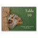 Bonito mariposa marrón descansando sobre un árbol con un elegante fondo verde naturaleza boda personalizada carta número de mesa. Haga clic en el Personalizar para cambiar el tamaño del tipo de letra, el estilo y el color. Esta imagen está disponible en muchos productos de mi galería. Por favor visite Smilin' Eyes Treasures para ver más fotografía de flores y naturaleza y tarjetas de arte digital y regalos.
