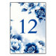 Tarjeta número de mesa del boda de color azul floral Chinoiserie y acuarela. Inspirada en la belleza de la porcelana Chinoiserie, esta tarjeta número de mesa boda presenta un impresionante diseño floral azul. Con un estilo de pintura de tinta tradicional, delicadas flores de peonía en cascada con gracia fluida en medio de un suave lavado de color azul. La paleta de colores es una armoniosa mezcla de tonos azules ricos, desde la profundidad del añil hasta el encanto del cobalto, realzada por un blanco resplandeciente. Este diseño artístico adorna las esquinas con elegancia, dejando espacio suficiente para tu número de mesa personalizado.