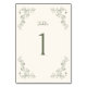 Elegante línea de arte floral rústico número de mesa boda con un diseño de marco botánico vintage de color verde sabio.