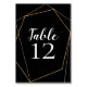 Tarjetas a juego para sus mesas en la gama de papelería de boda de marco geométrico negro y dorado. Personalice fácilmente los números para cada mesa.