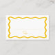 Añada un toque elegante a su recepción de bodas o evento especial con estas modernas tarjetas de boda Wavy Frame. El diseño retro muestra "Table" en un guión amarillo manuscrito con espacio para que escriba el nombre y el número de la tabla de su invitado. Un borde ondulado amarillo rodea el diseño contrastando con un fondo blanco. En la parte posterior de la tarjeta de lugar plana aparecen sus nombres y la fecha del boda con letras en negrita amarillas.