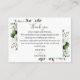 Tarjeta De Mesa Boda de Olive Green Botanical Floral Gracias