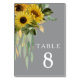 Tarjeta de número de mesa de boda de otoño gris de eucalipto de girasol.
