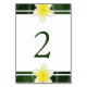 Este diseño presenta flores amarillas Frangipani / Plumeria. Un diseño tropical enmarcado con elegancia por flores frangipani amarillas y vegetación de hojas. El número de tabla se enfatiza con el color verde correspondiente de las hojas. Diseño de números de tabla boda tropical con elementos modernos. También hay disponibles invitaciones de boda coincidentes y otros artículos de papelería. Personalizar el número y compra cada número de tabla individualmente según cuántos números de tabla necesite.