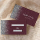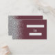 Esta elegante y moderna tarjeta de acompañamiento reservada en una mesa boda cuenta con un diseño purpurina de imitación plateado a lo largo de un borde sobre un oscuro fondo rojo burdeos. La parte delantera de la tarjeta da espacio al nombre del invitado y al número de la tabla en forma de rectángulos de color gris plateado. La palabra "tabla" aparece en el guión de escritura a mano gris plateado. Personalizar la parte posterior de la tarjeta con los nombres de la novia y el novio en escritura a mano y la fecha boda a continuación en letra sans serif.