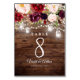 Tarjeta De Mesa Boda de Rustic Burgundy Floral String Lights