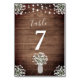 El diseño de esta tarjeta número de mesa boda incluye un jarrón de albañil lleno de flores de aliento de bebé sobre un fondo rústico de madera adornado con luces de cuerda. Haga clic en el botón personalizar para obtener más flexibilidad en la modificación del texto. Las variaciones de este diseño y los productos de coordinación están disponibles en nuestra tienda, zazzle.com/store/doodlelulu. Contáctenos si necesita este diseño aplicado a un producto específico para crear su propio elemento de coincidencia único! ¡Muchas gracias por ver un DoodleLulu por el diseño de los bichos de 2 de junio!
