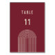 Tarjeta de número de mesa moderna en color rojo berry oscuro y blanco crema clara con tipografía limpia fuerte y un arco boho en la parte posterior de la tarjeta. Personalizar esta tarjeta de tabla Boda para que se ajuste a sus necesidades, cambie los elementos de texto y los colores si lo desea. Use esta tarjeta de número de tabla también para otra celebración como cumpleaños, evento de catering, etc. La suite boda que coincide está disponible en mi tienda.
