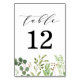 Elegantes tarjetas botánicas de número de tabla con su número de mesa, nombres y fecha boda con color de agua pintada en tonos vibrantes de primavera y verde musgo debajo. Los números botánicos de la tabla están diseñados para coordinar con nuestra colección de bodas de Acuarela Verde. Agregue cada tarjeta de número de tabla a su carrito individualmente.