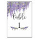 Número de mesa de boda de lavanda y árbol de glicina con acuarela púrpura. El diseño es fácil de personalizar, si desea cambiar las fuentes, haga clic para personalizar aún más. Los colores pastel son perfectos para bodas de primavera y verano. El diseño refleja decoraciones de boda modernas y sencillas.