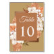 El Rústico Terracotta Gold Boho Pampas Orquídea Números De Mesa Bodas. El diseño presenta paampas de hierba, orquídeas blancas y algodón con un marco rústico de terracota boho