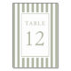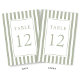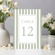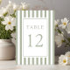 Número de mesa de boda elegante a rayas verde salvia.