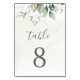 Hermosos números de mesa de boda con eucalipto acuarela y hojas doradas. Una excelente opción para bodas al aire libre.