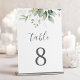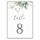 Bellos números de mesa de boda con eucalipto acuarela y hojas doradas. La elección perfecta para bodas al aire libre.