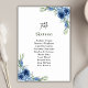 Tarjeta De Mesa Boda floral azul y agitado