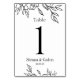 Una minimalista línea blanca de boda arte número de mesa floral con una línea dibujada a mano representando un rosa, brotes y hojas.