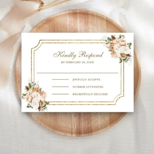 Sorprenda a sus huéspedes con esta elegante tarjeta con flores y marcos dorados.