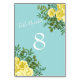 Tarjeta De Mesa Boda floral de primavera amarilla y Aqua