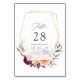 Tarjetas de número de mesa de boda floral boho con peonías y rosas con marco geométrico dorado personalizables según los detalles de su evento.