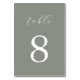 Crea tu propio número de tabla boda personalizado con tipografía minimalista moderna y color verde sabio.