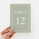 Tarjeta de Número de Mesa de Boda Moderna Elegante Verde Salvia